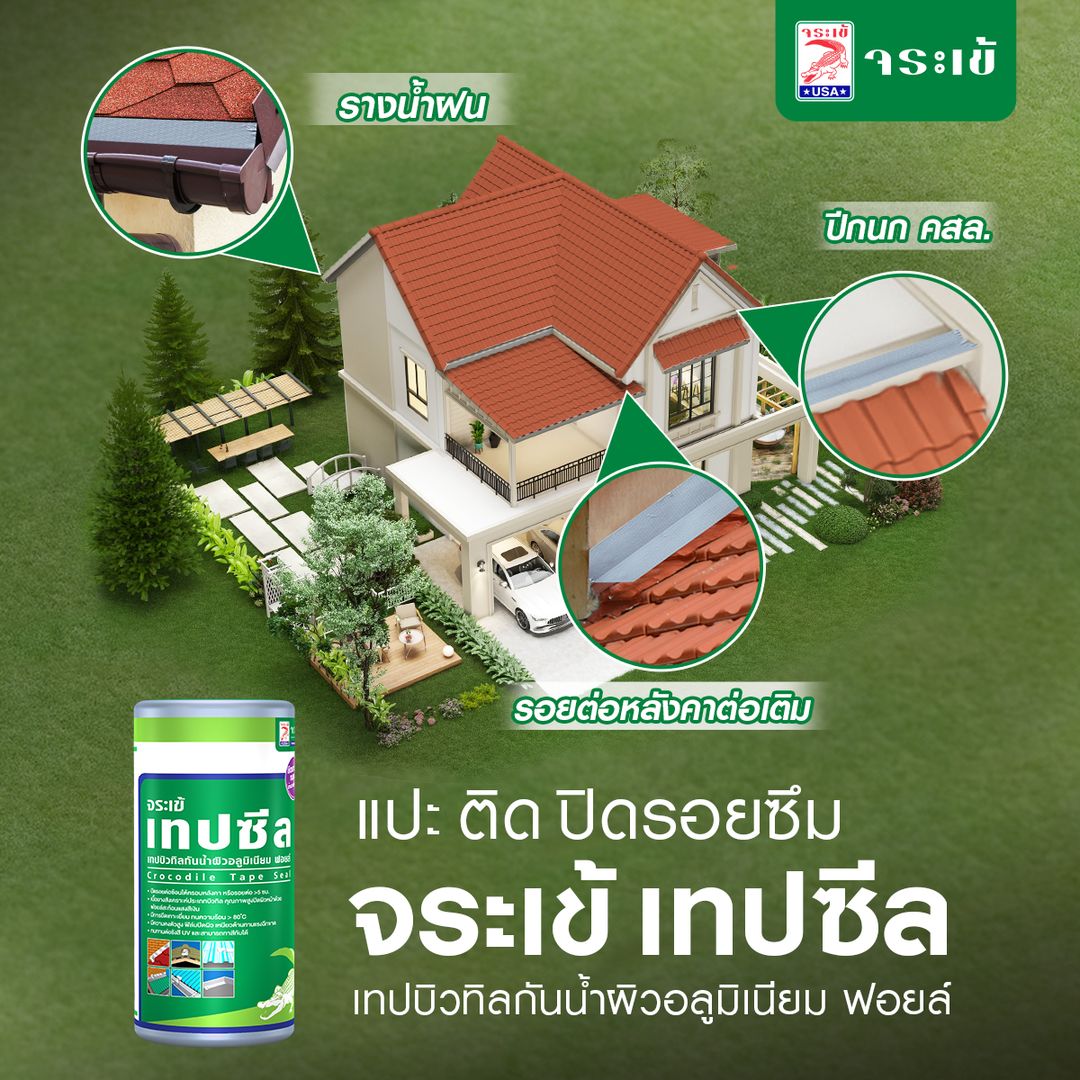 ภาพ: จระเข้ เทปซีล (เทปกาวกันน้ำและกันรั่วซึม คุณภาพสูง เหนียว ทนทานต่อรังสี UV และสามารถทาสีทับได้)