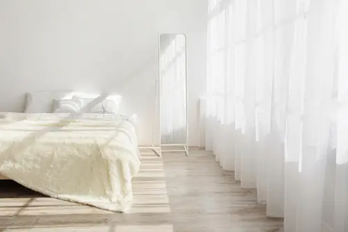 อีกหนึ่งสไตล์การแต่งบ้านเพื่อรับแสงแดดให้รู้สึกสดใส ผ่อนคลายตลอดทั้งวัน เจ้าของบ้านหลายท่านเลือกใช้ “ผ้าม่านโปร่ง” เพื่อมองเห็นบรรยากาศด้านนอก และเลื่อนเปิดปิดได้ง่าย และทำให้บ้านดูอ่อนโยนละมุนอีกด้วย ส่วนใหญ่ผ้าม่านโปร่งจะใช้สีโทนเย็น และแต่งลวดลายเป็นลูกไม้ เพื่อเล่นกับเงาที่สะท้อนกระทบลายให้ดูสวยงาม