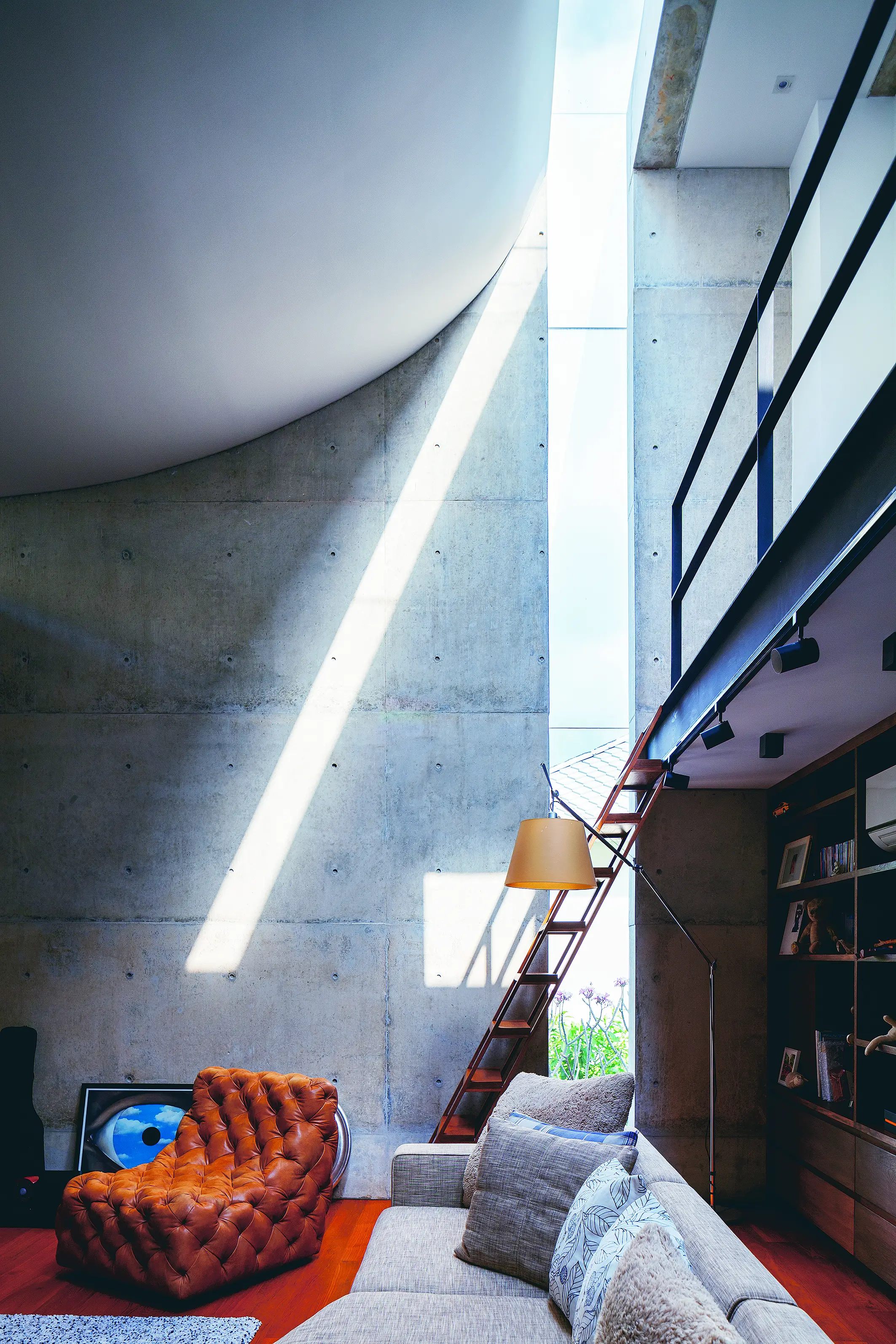 การออกแบบช่องเปิดทำให้เกิดปฎิสัมพันธ์ระหว่างพื้นที่ภายในกับพื้นที่ภายนอกบ้าน อาจเป็นการออกไปใช้งาน การมองเห็น หรือการนำแสงสว่างเข้ามา เช่น การทำหลังคาสกายไลต์ ช่องแสง หน้าต่าง และประตู อย่างบ้านหลังนี้ออกแบบช่องแสงและหลังคาสกายไลต์เป็นแถบยาวมาเข้ามุมกัน เสมือนแยกโครงสร้างห้องออกเป็นสองส่วน เปิดให้แสงธรรมชาติเข้ามาสร้างมิติในห้องได้อย่างสวยงาม