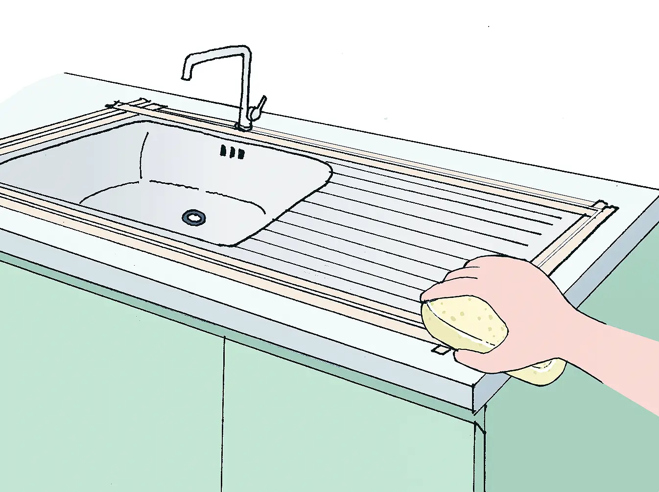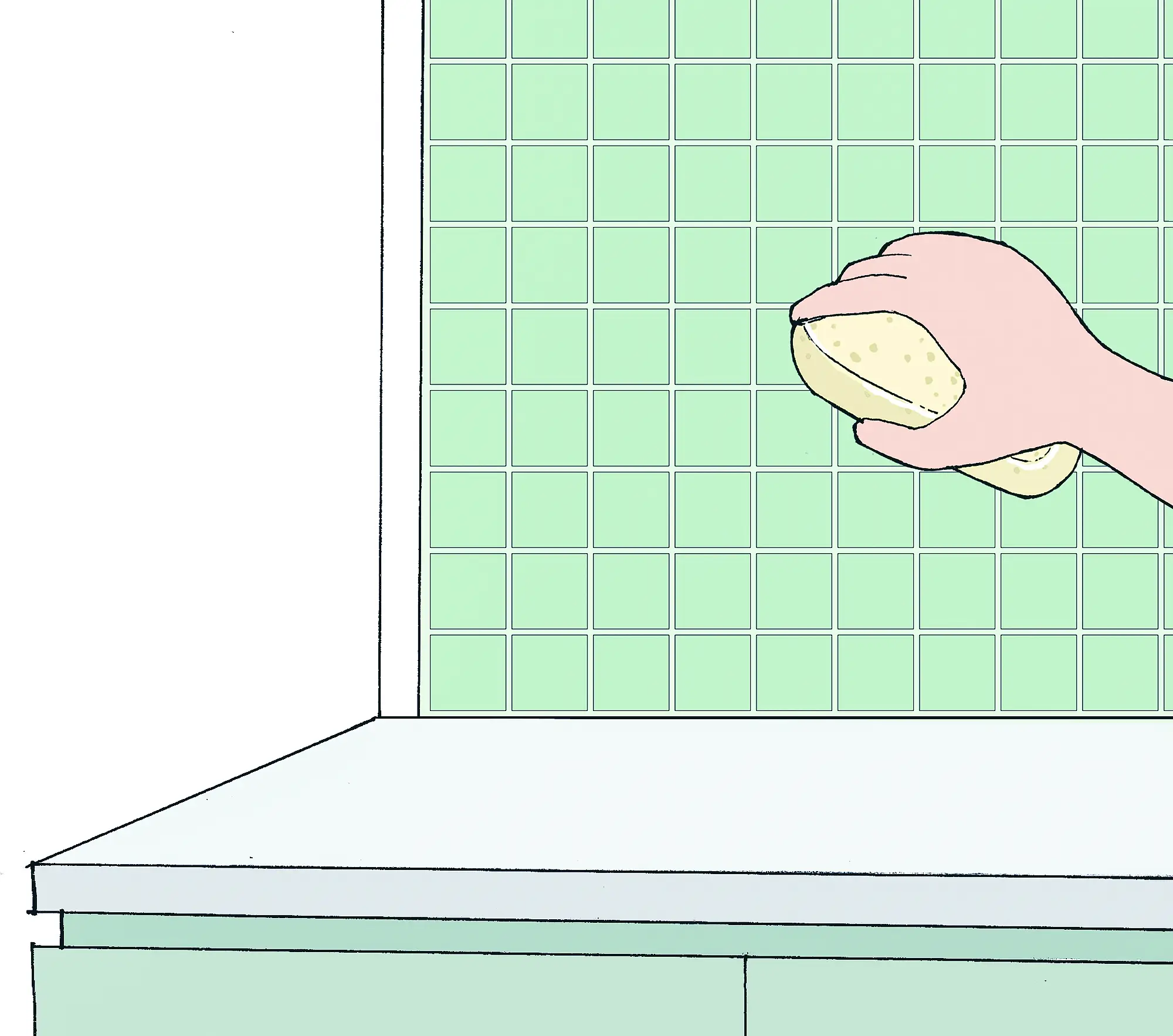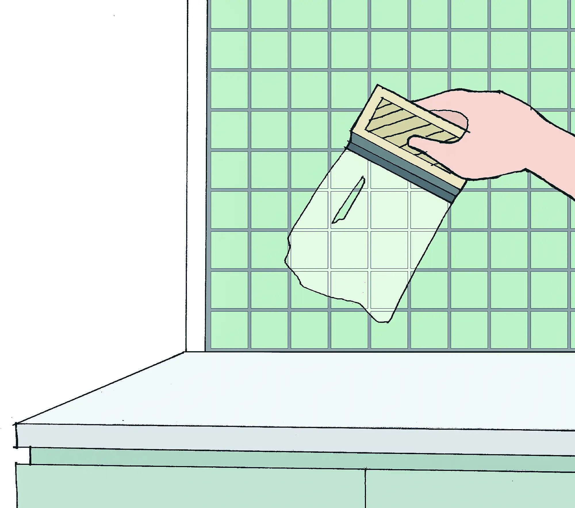 เปลี่ยนผนังกระเบื้องเหนือเคาน์เตอร์ที่เกิดคราบราดำให้กลับมาสวยอีกครั้ง ด้วยการปูกระเบื้องโมเสกทับ หรือการเปลี่ยนยาแนวกระเบื้องใหม่ด้วยการขูดยาแนวเก่าออก แล้วยาแนวใหม่ด้วยกาวยาแนวอีพ็อกซี่ ป้องกันราดำ ตะไคร่ และแบคทีเรีย ทั้งปูและยาแนวได้ครบจบในตัว