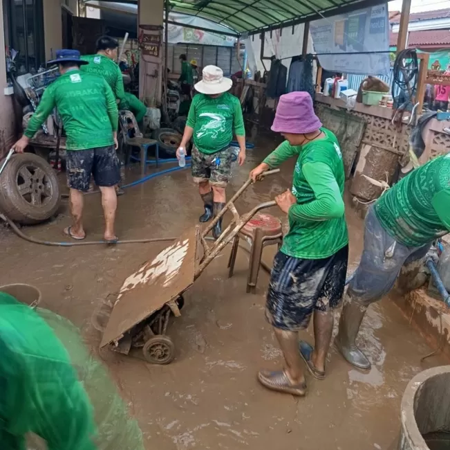 In addition to financial and material support, Jorakay employees in collaboration with Sahapaiboon Home Center in Chiang Rai actively participated in on-ground recovery efforts. Together, they helped clean houses and public spaces in Chiang Rai Province following floodwaters' retreat, aiming to restore normalcy to the affected areas as swiftly as possible.