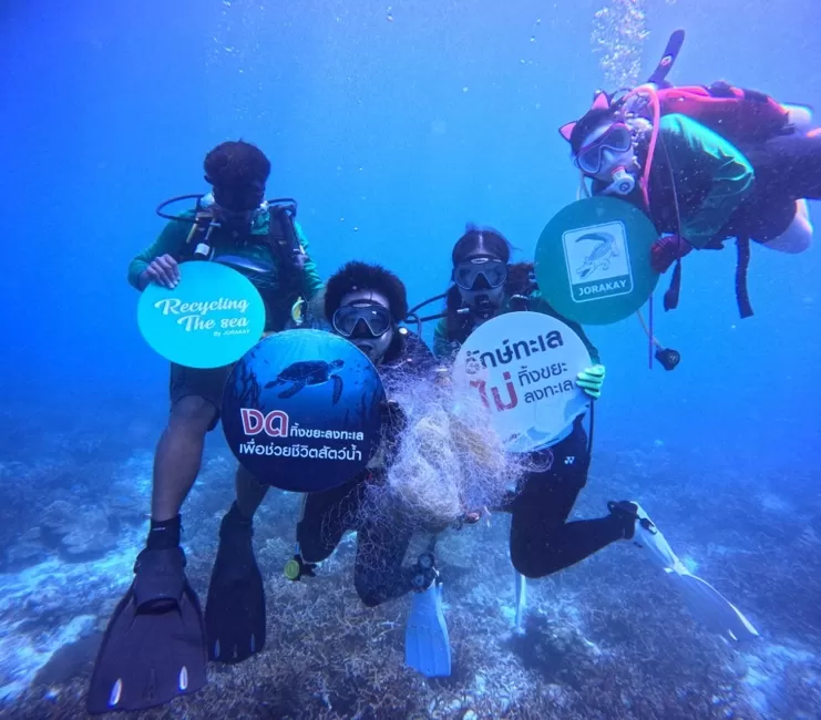 “Jorakay” continues its commitment to environmental sustainability through its "Recycling the Sea by JORAKAY" initiative. Now in its third consecutive year, the project focuses on restoring marine and coastal resources. Representatives from Jorakay, in collaboration with volunteer divers, participated in an underwater and beach clean-up activity on September 28-29, 2024, at the Mu Ko Chumphon National Park, Chumphon Province. The activity aims to raise awareness about reducing plastic usage and promoting proper waste segregation to minimize environmental pollution. By addressing marine debris, the initiative helps preserve the beauty and sustainability of the underwater ecosystem.
