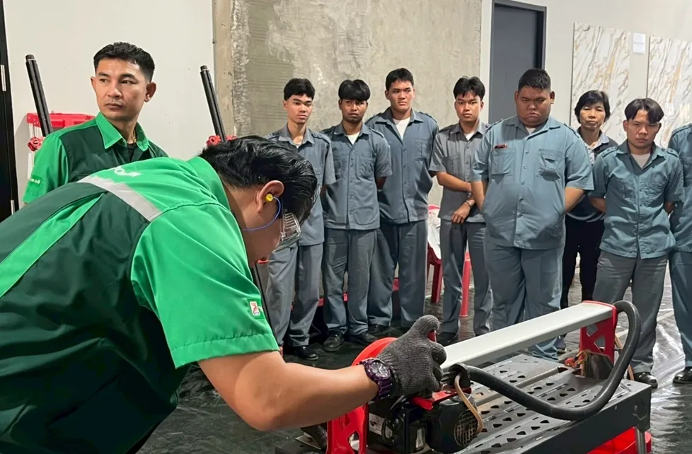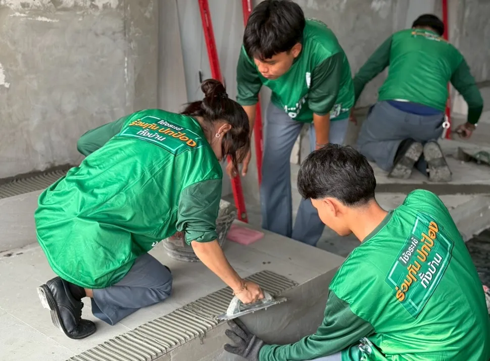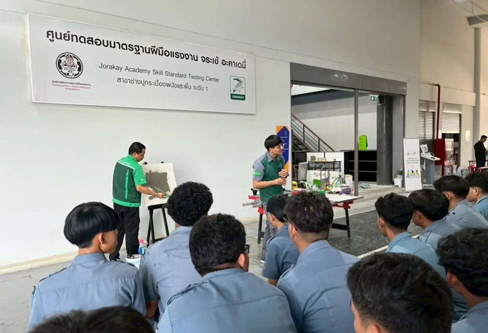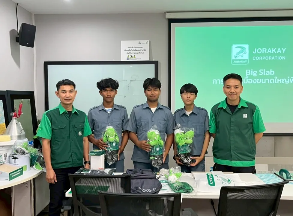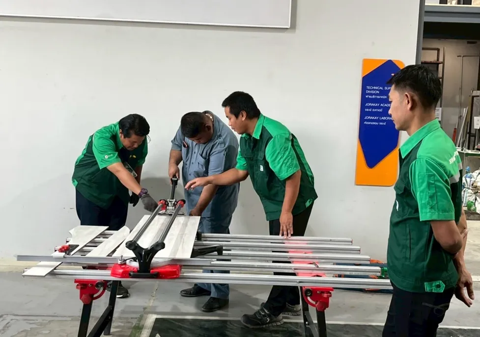 Jorakay Corporation believes that sustainable growth starts with developing people. By sharing expertise and advanced Big Slab tile installation techniques with Higher Vocational Certificate (HVC) students in Construction Technology from Min Buri Technical College, Jorakay seeks to elevate professional skills, strengthen workforce capabilities, and support long-term, sustainable career development — all under the philosophy of Build Today Beyond Tomorrow