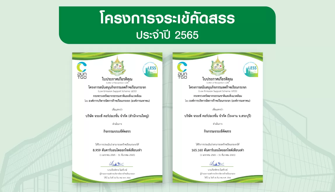 “โครงการจระเข้คัดสรร” จับมือร่วม โครงการสนับสนุนกิจกรรมลดก๊าซเรือนกระจก (Low Emission Support Scheme) หรือเรียกว่าโครงการ LESS โดยองค์กรบริหารจัดการก๊าซรือนกระจก (อบก.) พัฒนารูปแบบการดำเนินกิจกรรม เพื่อสร้างความตระหนักให้เกิดการลดการปล่อยก๊าซเรือนกระจก ในการบริหารจัดการขยะรีไซเคิลภายในองค์กรทั้งสำนักงานใหญ่และโรงงาน จ.สระบุรี ร่วมกับชุมชน