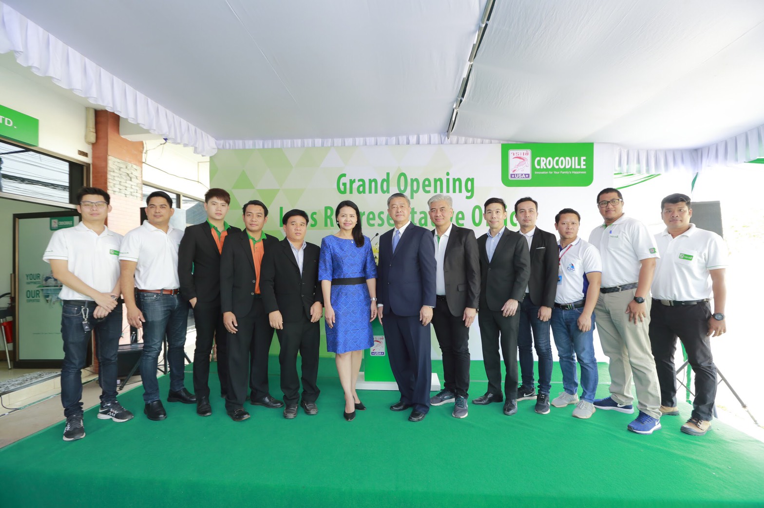 ซึ่งภายในพิธี คุณโยธิน ยมลยง ผู้ช่วยกรรมการผู้จัดการ สายงานขาย บริษัท จระเข้ คอร์ปอเรชั่น จำกัด ขึ้นเป็นประธานกล่าวเปิดงาน และได้รับเกียรติจากคุณยานี ศรีมีชัย อัครราชทูตที่ปรึกษา การพาณิชย์ ประจำสาธารณรัฐประชาธิปไตยประชาชนลาว ขึ้นร่วมตัดริบบิ้นเปิดสำนักงาน อีกทั้งยังได้รับเกียรติจากตัวแทนร้านค้าผู้แทนจำหน่ายสินค้าแบรนด์จระเข้หลากหลายเจ้า พร้อมทั้งสื่อมวลชน ได้มาร่วมแสดงความยินดีในพิธีเปิดสำนักงานใหม่ในครั้งนี้ด้วย