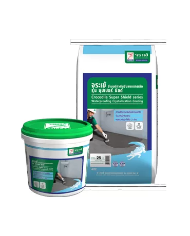 จระเข้ รุ่น ซุปเปอร์ ชิลด์ เป็นซีเมนต์ทากันซึมแบบตกผลึก มีส่วนประกอบของปูนซีเมนต์ทรายละเอียดและสารเคมี เพื่อใช้สำหรับทำระบบกันซึมในงานคอนกรีตใช้งานง่าย เพียงผสมน้ำแล้วทาบนคอนกรีต ส่วนผสมของสารเคมี ทำหน้าที่แทรกซึมลงไปในผิวคอนกรีตและไปก่อตัวเป็นผลึก สกัดไม่ให้น้ำซึมผ่านผิวคอนกรีตได้ และมีคุณสมบัติป้องกันการกัดกร่อนของผิวคอนกรีตจากสารเคมีและกรด