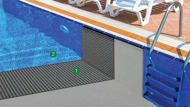 กระเบื้องโมเสก หรือกระเบื้องโมเสกแก้ว เป็นวัสดุที่นิยมนำมาตกแต่งห้องต่าง ๆ ภายในบ้านรวมถึงใช้ปูในสระว่ายน้ำกันมากขึ้น เพราะช่วยสร้างเอกลักษณ์อันโดดเด่นได้เป็นอย่างดี แต่ก็มีราคาแพงกว่ากระเบื้องทั่วไป ต้องอาศัยช่างผู้เชี่ยวชาญในงานติดตั้ง เพราะมีความซับซ้อนในการติดตั้งและซ่อมแซมยากหากกรณีชิ้นส่วนโมเสกแก้วเล็ก ๆ เพียงชิ้นเดียวหลุดต้องเปลี่ยนใหม่ทั้งแผ่น เพราะเหตุนี้ในการติดตั้งจึงต้องเลือกผลิตภัณฑ์ที่ดี มีคุณภาพสูง มีการยึดเกาะที่ดี ช่วยป้องกันการหลุดล่อนที่อาจเกิดขึ้นระหว่างชิ้นโมเสกกับเน็ต โดยเฉพาะเมื่อนำโมเสกไปใช้ในพื้นที่ที่ยากต่อการดูแลและซ่อมแซมอย่างในสระว่ายน้ำ เป็นต้น